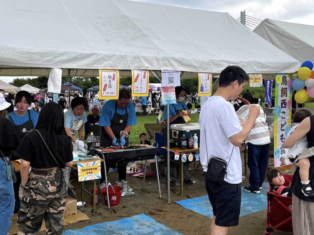 鳥飼なすの加工品、漬物、ジャム、肉まん、ちまき、ミンチカツ、餃子、煮びたし、おやき、胡瓜漬、ポテト、飲料、射的
